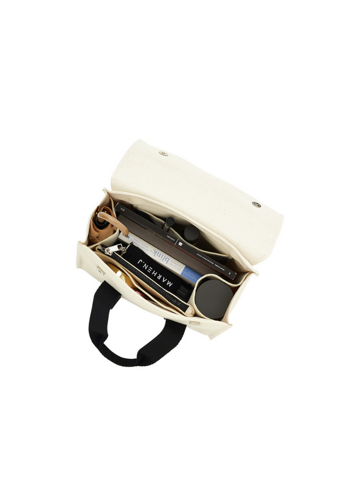 This bag is a best seller with a basic design. It has useful inner arrangement and extra bottom pad. The bag features four pockets including two tumbler pockets, and a safety cover design. The Roy Mini bag can hold an Ipad Pro11 device. It can be worn three ways as a tote, shoulder or cross body bag. The bag features snap button on the handle and length adjustable strap.